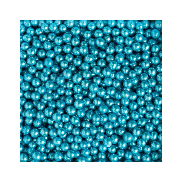 Perle di zucchero azzurre metallizzate, da 100 g e diametro 5 mm, da cospargere direttamente su torte, cupcakes e biscotti e vivacizzare le tue creazioni, realizzati con coloranti estrazione naturale